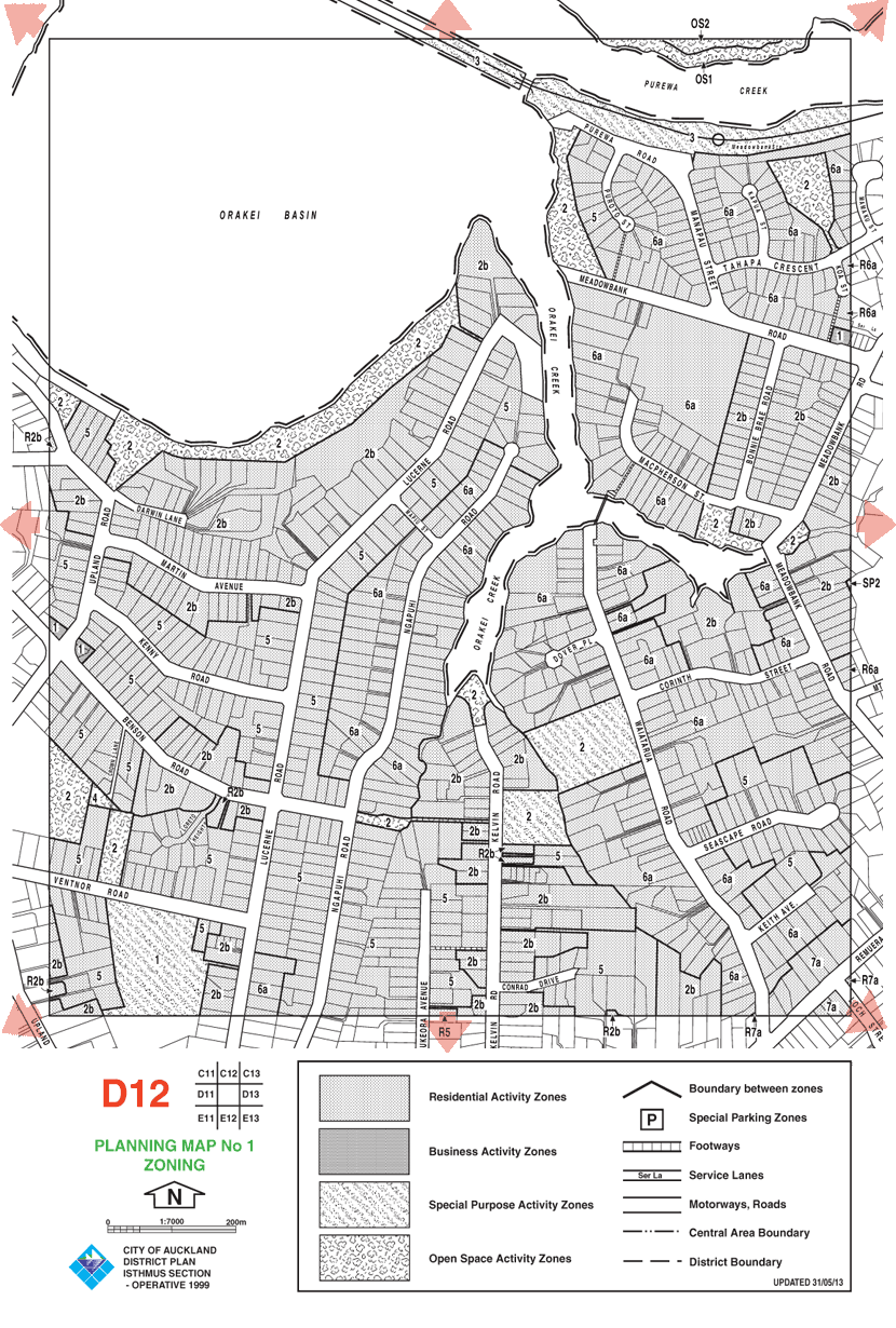 Sheet D12 Planning Map 1The purpose of this map is to indicate relevant zoning information.Click on the area in the map legend to link to the appropriate text. Note that this image is fairly large (157k) to show enough detail to help you get the correct information.