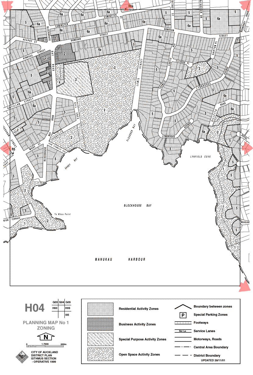 Sheet H04 Planning Map 1The purpose of this map is to indicate relevant zoning information. Click on the area in the map legend to link to the appropriate text. Note that this image is fairly large (128k) to show enough detail to help you get the correct information.